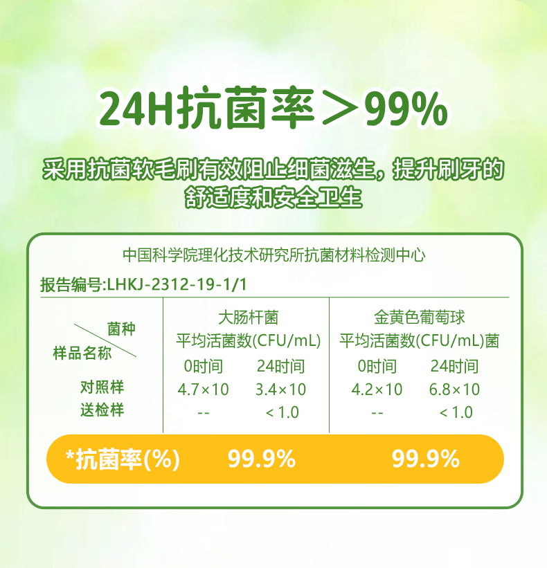 刷毛規格:0.12mm 超纖細柔抗菌軟毛,磨圓率符合兒童牙刷安全標準